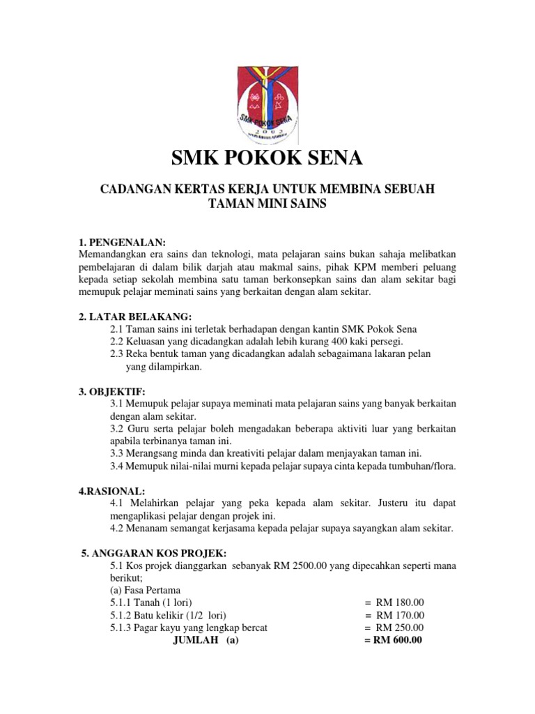 Selamat datang ke portal rasmi sk taman puteri wangsa. Kertas kerja kebiasaanya dihasilkan untuk beberapa tujuan antaranya adalah bagi mendapatkan pembiayaan daripada agensi kewangan seperti bank dan agensi kerajaan seperti majlis amanah rakyat (mara), perbadanan usahawan nasional. 7/16/2019 kertas kerja taman sains 1/5sk kantan permai43000 kajang, selangordisediakan oleh :ajk panitia sains/ panitia kemahiran hidupsk kantan permaikertas kerjaprojek… Use the download button below or simple online reader. Panitia sains dan matematik sekolah kebangsaan kg.