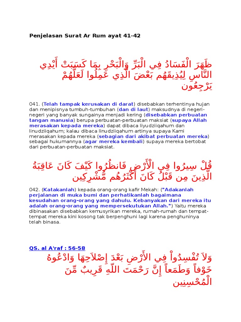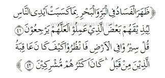 Arabic bangla/bengali deutsch english indonesian russian türkçe urdu. Verse no 41 of 60 arabic text, urdu and english translation from kanzul iman. ظَهَرَ الۡفَسَادُ فِى الۡبَرِّ وَالۡبَحۡرِ بِمَا كَسَبَتۡ اَيۡدِى النَّاسِ لِيُذِيۡقَهُمۡ بَعۡضَ الَّذِىۡ عَمِلُوۡا لَعَلَّهُمۡ يَرۡجِعُوۡنَ. Dengan menyebut nama allah yang maha pemurah lagi maha penyayang. Surah ar rum ayat 41.