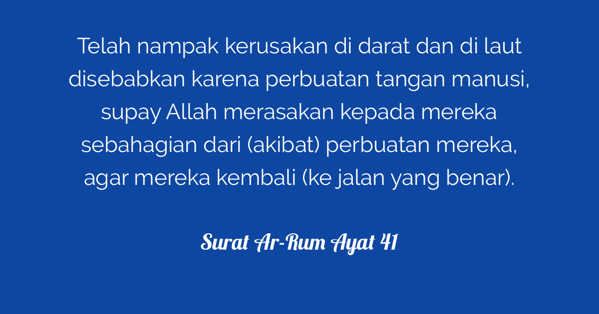Surah Ar Rum Ayat 41 Merupakan Ikram Kubang Pasu Facebook from lookaside.fbsbx.com (30:41) evil has become rife on the land and at sea because of men's deeds; Telah nampak kerusakan di darat dan di laut disebabkan karena perbuatan tangan manusia, supaya allah merasakan kepada mereka sebahagian lainnya: Zaahaaral faseadu feel barri val baahri bimea kasabat aydin neasi, li yuzeekaahum baa'daallazee aamiloo laaallahum yarcioon(yarcioona). Telah nampak kerusakan di darat dan di laut disebabkan karena perbuatan tangan manusia; Read and learn surah rum 30:41 to get allah's blessings. Σf = jumlah kemunculan kata (berdasarkan huruf arab gundul). Read or listen al quran e pak online with tarjuma (translation) and tafseer. Telah nampak kerusakan di darat dan di laut disebabkan karena perbuatan tangan manusi, supay allah merasakan kepada mereka sebahagian dari (akibat).